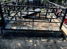 Затем мы приварили стальные полосы к опорам ограждения, тем самым создав необходимый для гранитной брусчатки периметр.